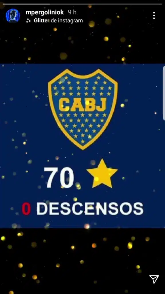 Afiches, posters y pasacalles fueron lo que eligieron los hinchas xeneizes. “Baila la hinchada baila, baila de corazón, suben y bajan, suben y bajan parecen ascensor”, fue la letra con la que decidió acompañar la foto que compartió en su historia de Instagram. Imposible leerla sin cantar, ¿no?