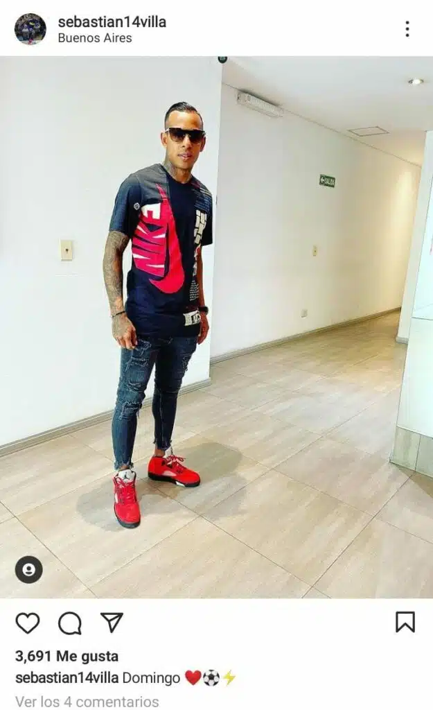 El delantero de Boca, Sebastián Villa, publicó una llamativa imagen en Instagram. Lejos del equipo de Sebastián Battaglia, el colombiano se sacó una foto con anteojos, zapatillas rojas y una remera negra con rojo. El xeneize jugará hoy ante Vélez Sársfield a las 20:15, un rival al que el atacante le supo convertir en varias ocasiones.
