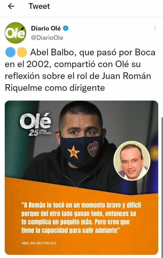 El exjugador de Boca, Abel Balbo, dialogó con la prensa en la jornada de ayer. En ese sentido, se tomó un tiempo para hablar de la situación actual xeneize. En ese sentido, afirmó: “A Román le tocó un momento que es bravo y difícil porque del otro lado ganan todo, entonces se te complica un poco más. Pero creo que tiene la capacidad de salir adelante”.