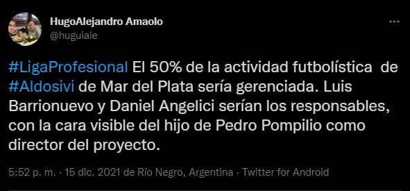 La noticia más importante del día es el desembarco del ex presidente de Boca, Daniel Angelici en el fútbol argentino. Esta vez no asumirá ninguna gestión presidencialista. Sino que estará al frente de una gerencia del fútbol profesional de Aldosivi. Además estará acompañado por otro exdirigente del club, Leandro Pompilio.