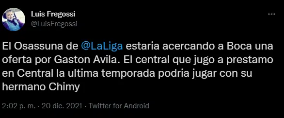 Según la información que brindó el periodista Luis Fregossi, desde el club de Pamplona están siguiendo al defensor. Pero todavía la oferta no ha sido formalizada a la institución. Aunque en su contrato, el defensor que proviene de Rosario Central no tiene una cláusula de recisión. Por ese motivo, deberán sentarse a charlar con los dirigentes de Boca.