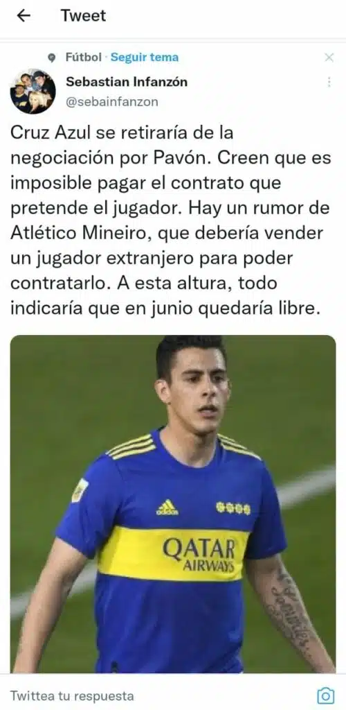 El delantero de BocaCristian Pavón, aún no sabe qué será de su futuro. La sorpresiva decisión de la dirigencia xeneize sería venderlo, y la única oferta era la del Cruz Azul, que parece haberse bajado del barco. En el conjunto mexicano creen que es imposible pagarle el contrato al delantero y desistiría de su contratación. Algunos rumores marcaron que Atlético Mineiro estaría interesado en él.