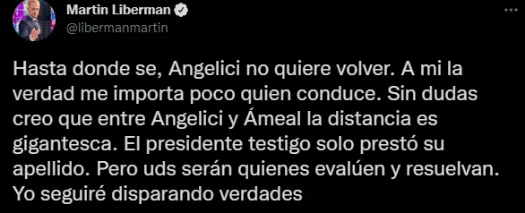 Según la información que brindó el periodista Martín Liberman, quien había sido durante el último tiempo uno de los más cercanos al expresidente del club dio a entender que por el momento no retornará a la institución. Ante esta información que se empezó a vincular en el corto plazo, los hinchas del equipo xeneize se expresaron con orgullo.