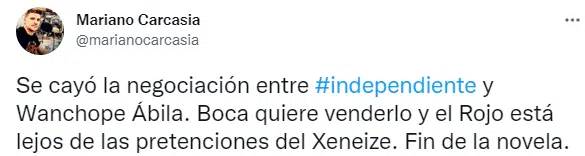 La gran complicación por Wanchope Ábila eran las charlas con el Consejo de Fútbol de Boca, que pretendía una venta definitiva. Por su parte, en Independiente buscaban un préstamo y además el Rojo todavía mantiene una deuda por el pase de Pablo Pérez. El atacante finaliza su contrato en diciembre y no tiene lugar en el Xeneize.