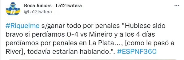 Días más tarde, el equipo de Miguel Ángel Russo, en ese entonces, eliminó a River por penales en la Copa Argentina en La Plata. “Solo puedo decir que en los penales tuvimos la suerte de tener un arquero que es una maravilla. Está más cómodo en los penales que en los partidos, es una cosa de locos”, comentó el máximo ídolo del Xeneize.