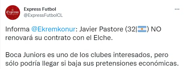 Por su parte, según contó Monserrate Hernández, periodista español que cubre al Elche para el diario AS, el ex Huracán no renovará su vínculo con su actual equipo. Recordemos que el mismo vence a fines de junio de este año y el club de la Ribera es el principal destino para Pastore en el momento posterior al fin de su contrato en el Viejo Continente.