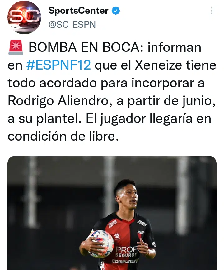 Nadie por parte del club salió a desmentir o a confirmar tal rumor. Hasta ahora solo se trata de un rumor, llama la atención, ya que ese puesto en Boca ya está cubierto. La llegada de Pol Fernández fue justamente para poder tener esa posición cubierta y no tener que buscar otro jugador. Aliendro por el momento, seguirá siendo jugador del “sabalero”.