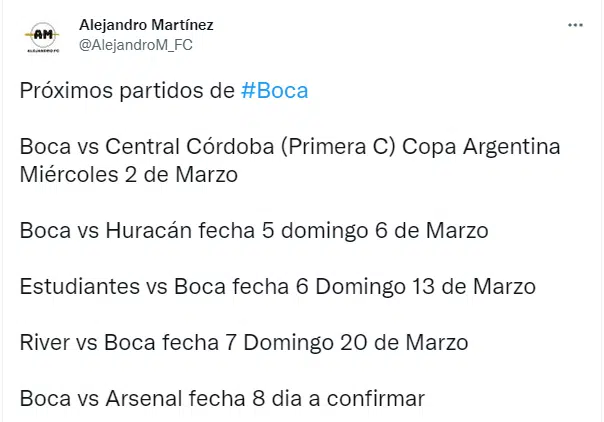 El balance general indica que Boca disputaría en promedio siete partidos por mes, uno cada cuatro días. Más allá de la agenda ajetreada, habrá tiempo para descansar debido a que no rodará la pelota en el país por la doble fecha de Eliminatorias del 24 y 29 de marzo. Battaglia tiene una tarea muy difícil y debe saber lidiar con ella de la mejor manera.