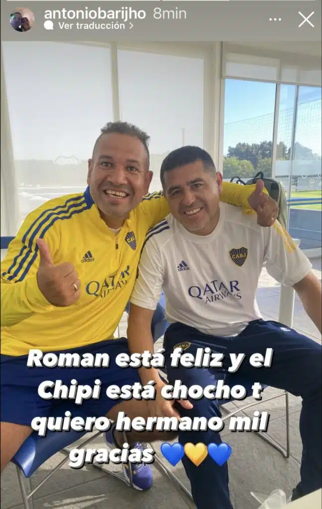 “Si Román está feliz, el Chipi está feliz, te quiero hermano, mil gracias”, las palabras del ex Boca al actual vicepresidente del club. Antonio Barijho siempre fue un jugador bastante polémico, todavía circulan imágenes con chicanas hacia todos los rivales, sobre todo a River, o suele opinar acerca de todo lo que pasa con respecto al “xeneize”.