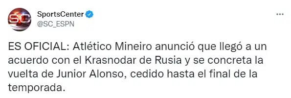 Junior Alonso vuelve a Atlético Mineiro, donde esta temporada será dirigido por Antonio Mohamed y va a disputar una nueva temporada en Sudamérica. El nombre del defensor sigue causando mucho enojo entre los hinchas de Boca debido a como se dio su salida del club y quieren volver a enfrentarlo en la Copa Libertadores.