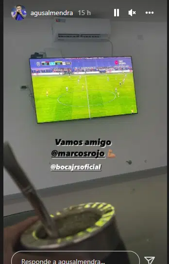 Hay que tener en cuenta que el volante fue marginado por Sebastián Battaglia del plantel y lleva varios días trabajando con la Reserva a la espera de poder resolver su futuro. Sin embargo, publicó una foto viendo el partido ante River con el mensaje “vamos amigo” y etiquetó a Marcos Rojo. Debajo también arrobó a la cuenta oficial de Boca.