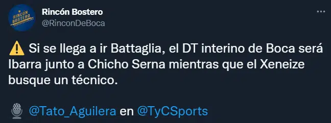 Hugo Ibarra y Mauricio Serna, actualmente al mando de la Reserva, serían la dupla técnica interina en caso de que Battaglia abandone al conjunto de Brandsen 805. De confirmarse los rumores que desvinculan al actual DT de Boca con la institución, los directivos Xeneizes se inclinarían por el negro y Chicho como candidatos a dirigir el plantel de Primera, hasta conseguir un nuevo entrenador.