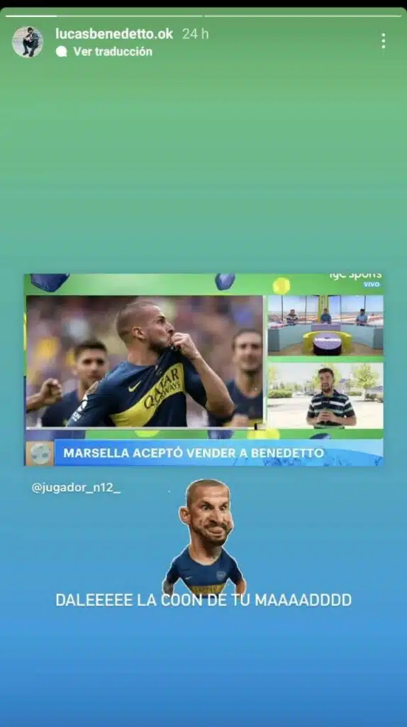 En las redes sociales, su hermano Lucas, publicó una historia que sorprendió a todos. Fue en Instagram, y compartió un posteo que afirmaba que Marsella aceptaba la venta de Pipa Benedetto. Allí puso: “Daleeeee… La C….de tu M…”. El mensaje hace alusión a la tardanza en la llegada de su familiar al club de la ribera. Todos los bosteros están ansiosos porque firme y anuncien su regreso.